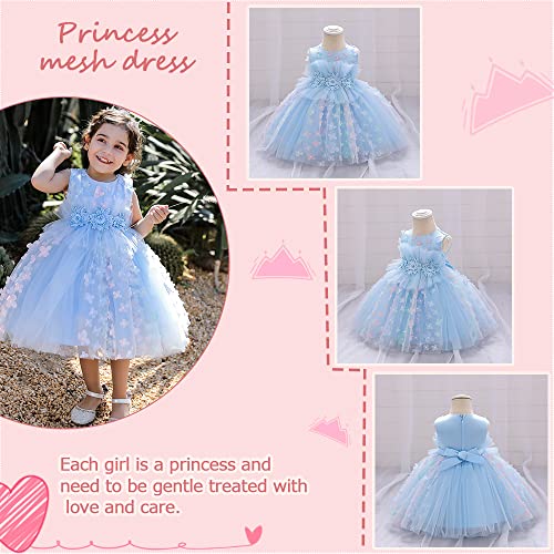 • DESIGN:Baby birthday dress is calf length,crewneck,sleeveless design,pearls;butterfly applique and flowers adorned, medium belt for bowknot,twirl tulle hem, hidden back zipper,easy to wear and take off.