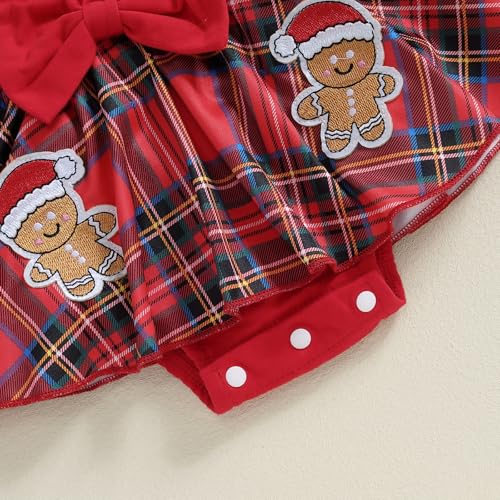 BeQeuewll Newborn Girl Christmas Clothes Infant Plaid Romper RufflesTutu Bodysuit First Christmas Outfit Baby Christmas Dress 5