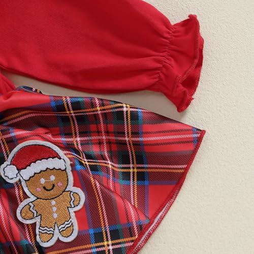 • Design: Baby Christmas outfit girl, 1st christmas baby girl outfit,infant girl christmas clothes,christmas dress for baby girl,long sleeve ruffles plaid romper dress with headband,christmas gingerbread/santa claus/snowman print on the bow skirt,super cute baby christmas dress