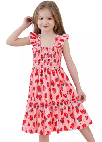 RETSUGO Little Girls Dresses Flutter Sleeve Casual Birthday Party Dress Toddler Kids Swing Twirly Summer Sundress 1-8 Years 5