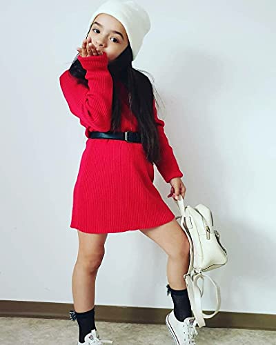 • Design: Adorable toddler baby girl knitted sweater dress with PU belt, long sleeve, solid color, turtle neck, a variety of color choices. Simple and stylish toddler girls knee length dress, great to pair with sneakers or boots, such a cute look!