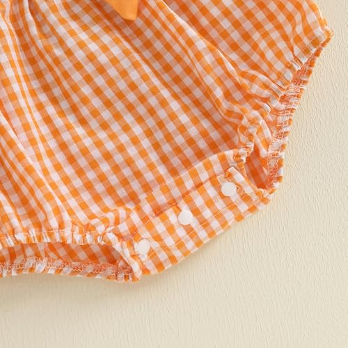 KMBANGI Infant Newborn Baby Girl Pumpkin Smocked Romper Flutter Sleeve Plaid Bow Onesie Bodysuit Baby Halloween Clothes 0-18M 7