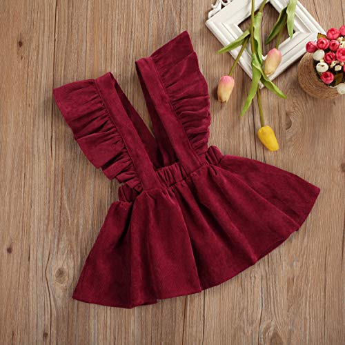 • 【Style】Ruffle sleeve, square collar, strap, elastic band, solid color, corduroy, pleated skirt for girls,all fashion design are suitable for your cute baby girl boy.We have 8 colors for choice:Green, red, pink, wine red, khaki, gray, mint green, light gre