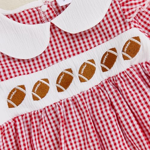 Newborn Baby Girl Football Outfit Embroidery Smocked Bubble Romper Long Sleeve Bodysuit Fall Clothes 6