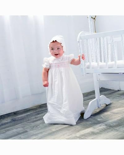 • TIMELESS DESIGN: This beautiful baptismal gowns feature a hand-smocked yoke with cross detail and short sleeves, making it a classic and elegant choice for your baby's special day.