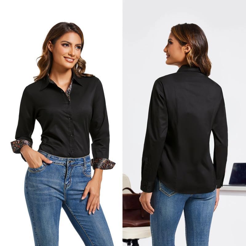 • Versatile & Professional: Womens long sleeve button down shirt ideal for business, office, work, dating, vacation and daily casual wear. The button up shirt women offers a refined look that enhances your professional wardrobe