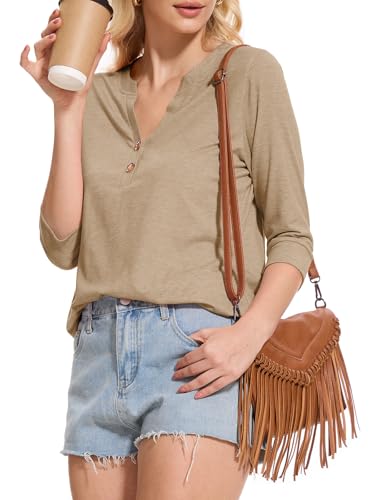 Womens Tops 3/4 Sleeve V Neck Button Down Shirts Business Casual Outfit Basic Tees Summer Top 2025 3