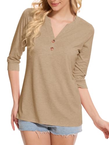 Womens Tops 3/4 Sleeve V Neck Button Down Shirts Business Casual Outfit Basic Tees Summer Top 2025 2