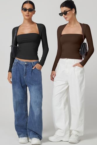 • Elevate Your Style with Elegance: Embrace the perfect blend of comfort and allure with our Long Sleeve Square Neck Crop Top. Crafted to accentuate your silhouette, this top combines a bodycon fit with a decent cropped length, ensuring you make a statement without saying a word. Its sauqre neckline elegantly highlights your collarbones and adds a dash of sophistication to your wardrobe.