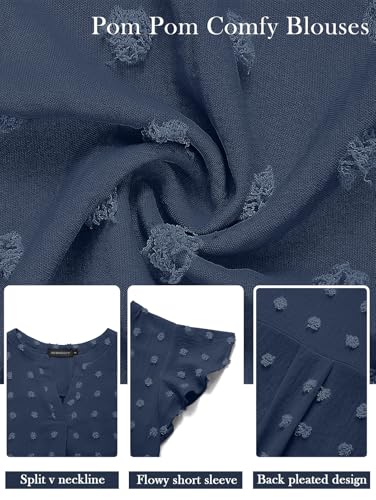• Features: Solid color, flowy short sleeve, split v neckline, swiss dot fabric, no lined, front and back pleated design, summer tunic shirt, breathable, loose fit, fashion dressy casual blouse, pull on closure.