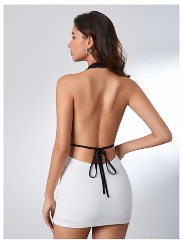 HOT ! Verdusa Women's Y2k Rave Ripped Cowl Neck Halter Tops Tie Back Sexy Top