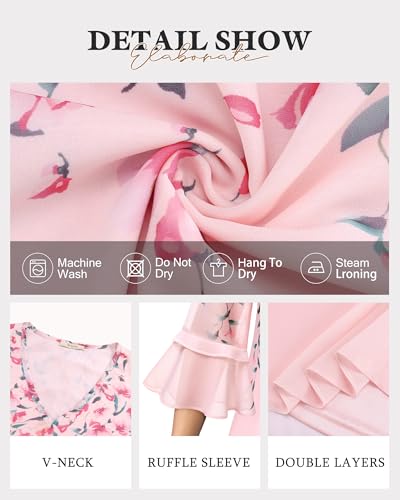 Bebonnie Womens Dressy Casual Tops Ruffle 3/4 Sleeve V Neck Floral Chiffon Blouses 3