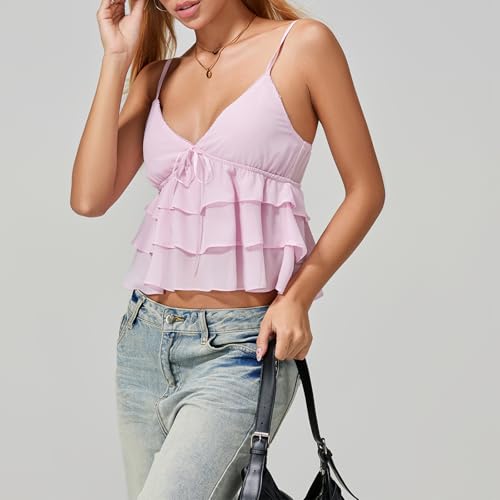 • Size: Women's Y2k ruffle tank tops for S/M/L. Please check our size chart before you order.In daily life, it is very fashionable to wear sandals,high heels,necklaces, shoulder bags, etc.