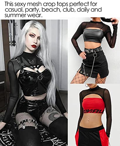 Avidlove Mesh Crop Tops for Women Mock Neck Long Sleeve Crop Top See Through Shirt Top Sexy Clubwear 5