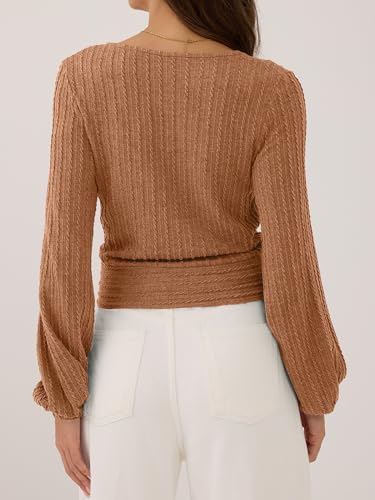 • Feature: Deep V neck, Lantern Sleeve sweater, long sleeve sexy Cropped tops, ribbed Cable Knit sweater