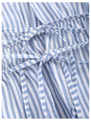 • Features: Striped, tie waist, long sleeves, deep v neck, flare hem, elegant, blouse for women
