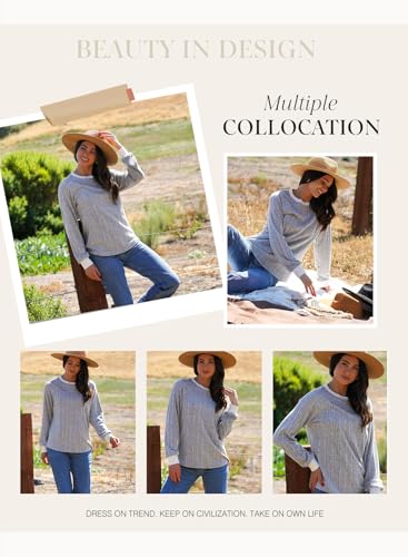 Dokotoo Long Sleeve Shirts for Women Casual Fashion Loose Fit Womens Tops Crewneck Basic Pullover Tunics 4