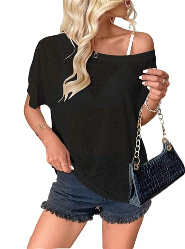 • Trendy Off-Shoulder Look: The sexy sheer top for women is designed with a relaxed neckline that drapes effortlessly off one shoulder, this casual short sleeve summer tee adds a chic, carefree vibe to your look. Perfect for casual street style or beachwear