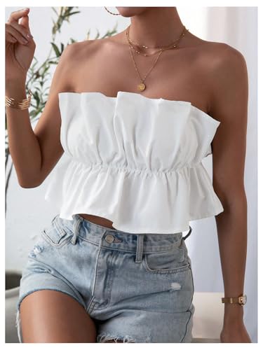 More information about GORGLITTER Women's Strapless Bubble Tube Tops Ruffle Open Back Sleeveless Cute Summer Bandeau Peplum Crop Tops 2025