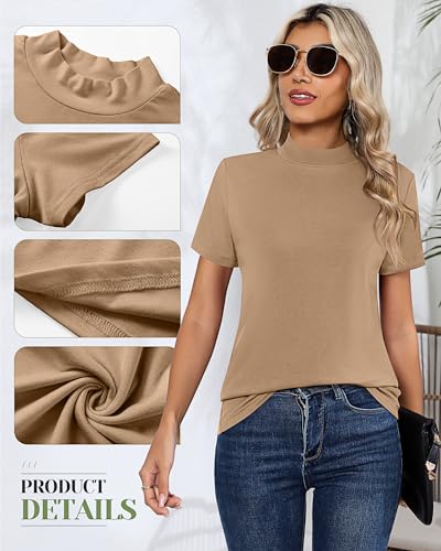 Ficerd 3 Pack Women's Mock Neck Shirts, Short Sleeve Turtleneck Tops Casual Comfy T Shirts Stretch Fitting Trendy Tee Blouse 6