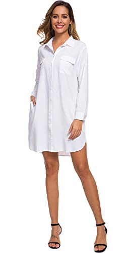 LUSMAY Women's Long Sleeve V Neck Button Down Shirt Dresses Casual Summer Dress with Pocket 1