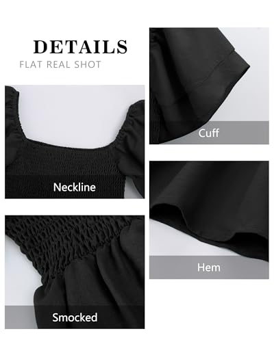 Women's Summer Peplum Tops Square Neck Ruffle Trim Short Sleeve Blouse Smocked Top Dressy Casual Shirts 5