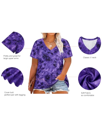 RITERA Plus Size Tops for Women Oversized Summer Basic V Neck Short Sleeve Henley Shirt Casual Tunic Shirts XL-5XL 4