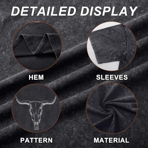 • Occasion: Womens western cow skull graphic tees, suitable for country, horse riding, vacation, travel, club, concert, outdoor, daily life and etc, vintage retro simple style but make you more charming