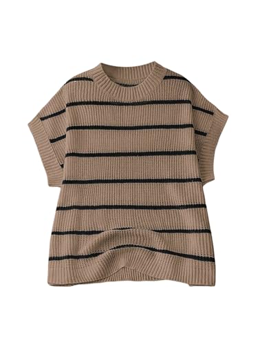 More information about Verdusa Women's Plus Size Striped Print Rib Knit Tops Short Sleeve Crew Neck Sweater Top