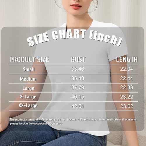 • Soft Cotton Jersey: Our fitted tshirts shirts for women are crafted from high quality cotton material, soft to the touch, breathable and sweat-wicking, ensuring you stay dry and comfortable all day long. The addition of spandex of the tight basic tees for women provides stretchiness for a great fit, perfect as baby tees for women for active wear or hot summer days.