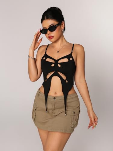 HOT ! Verdusa Women's Sleeveless Crop Top Cut Out Asymmetrical Hem Slim Fit Cami Top