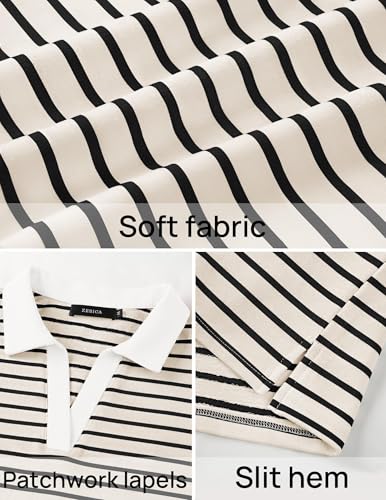 ZESICA Womens Striped Long Sleeve Tops Oversized Sweatshirt V Neck Loose Fit Tunic Tops Spring Casual Blouses 4