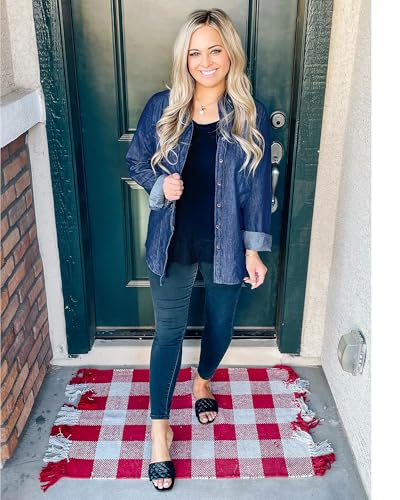 • Basic style & Relaxed fit. This womens lightweight denim shirt comes with curved hem, easily matching with skinny jeans or jeggings for trendy look. Loose button up shirts for women long sleeve, casual work shirt tops, collared v neck shirts.