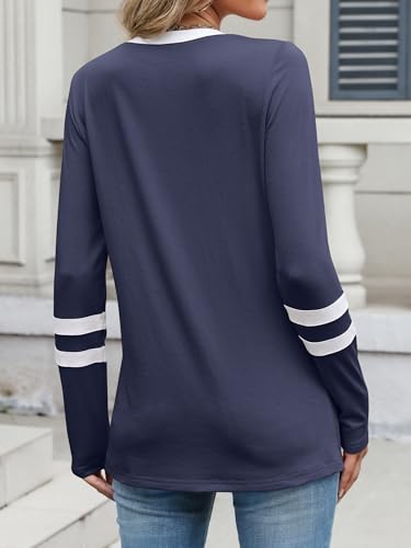 ANRABESS Womens Long Sleeve Shirts V Neck Color Block Basic Tshirt 2025 Fall Casual Striped Tee Tunics Tops Trendy Outfits 2