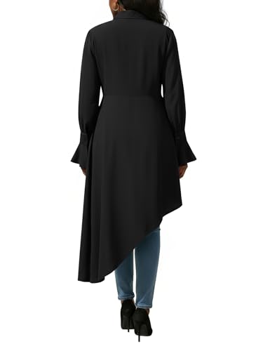 Umenlele Women’s Button Down Long Sleeve Asymmetric Ruffle High Low Hem Blouse Shirt Top 6