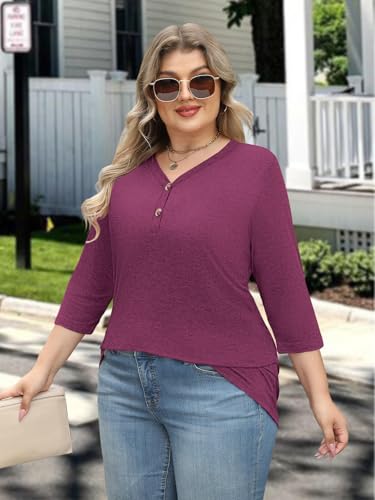 Gloria&Sarah Womens Fall Clothes Plus Size Button Down 3/4 Length Sleeve Shirts Blouses Casual Loose Tunics L-4XL 3