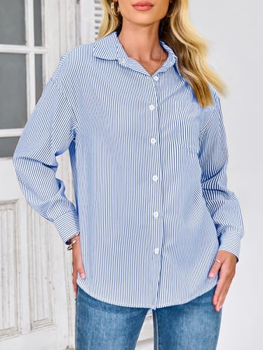 • Features: Button down shirts for women, long sleeve blouses, fashion spring tops, striped pattern, a chest pocket, v neck, boyfriend style, cotton button down shirts exudes more elegance and stylish.Women striped shirts design with a loose fit for maximum comfort