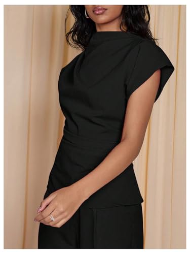 HOT ! Floerns Women's Short Dolman Cap Sleeve Ruched Mock Neck Zipper Back Dressy Casual Tee Shirts