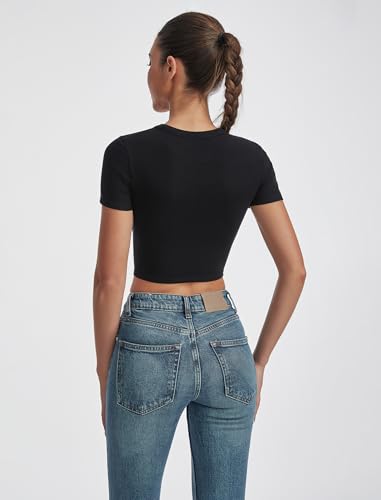 More information about Short Sleeve Crop Tops for Women Classic Ribbed Slim Fit T-Shirt Summer 2025 Trendy Basic Tee