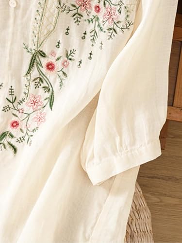 More information about Women's Embroidered Cotton Tops Summer 3/4 Length Sleeve Round Neck Blouse Casual Loose Fit Tunic