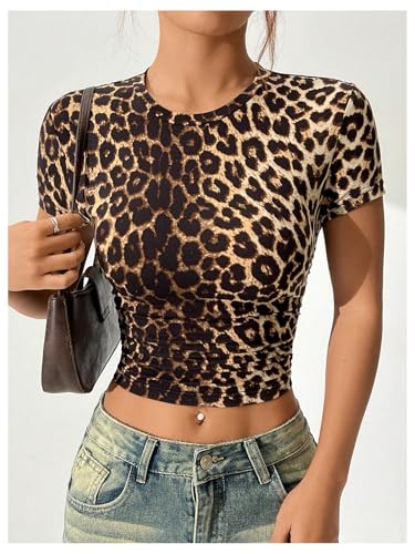 • Feature: Womens going out crop tops, leopard print, short sleeve, round neck, slim fit, easy to pair with high-waisted jeans, shorts, skirts, or wide-leg pants