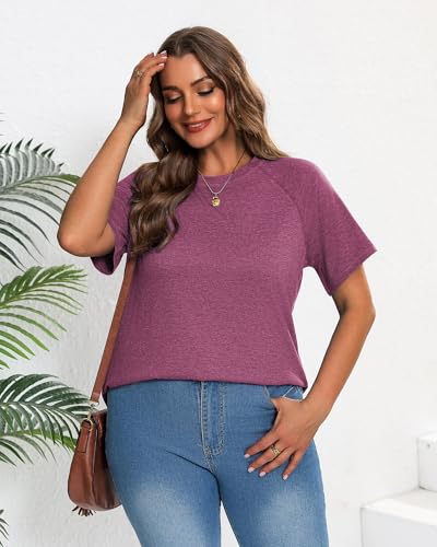 Ficerd 3 Pack Plus Size Tops for Women Casual Crewneck Raglan Sleeve Loose Tunic Tee Summer Basic Workout T Shirts XL-5XL 6