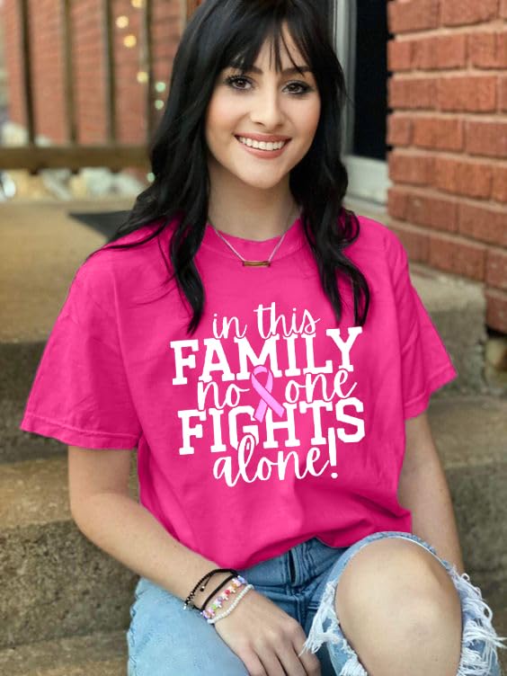 HOT ! Breast Cancer Awareness Shirt Women: in This Family No One Fights Alone Shirt Breast Cancer Gifts Pink Short Sleeve Tops