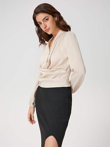 • Elegant Style: Embrace the sophisticated allure of the CIDER Satin V-Neck Wrap Blouse. Perfect for work or daily casual wear, this elegant blouse for women enhances your wardrobe with its chic wrap design and stylish V-neckline