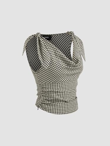 More information about CIDER Plaid Tank Top Cowl Neck Knotted Sleeveless Cami Top Checks Cotton Blend Women's Shirt Blouse Casual