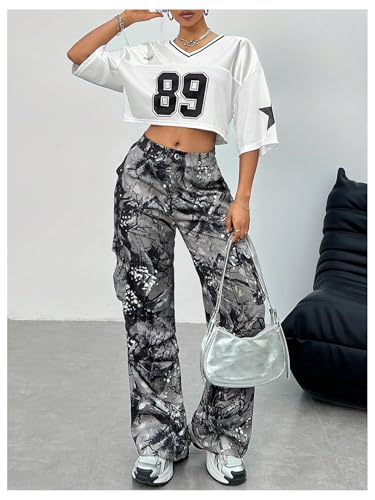 Verdusa Women's Jersey Shirts Y2K Number Graphic Crop Tops Half Sleeve Summer Tees 2
