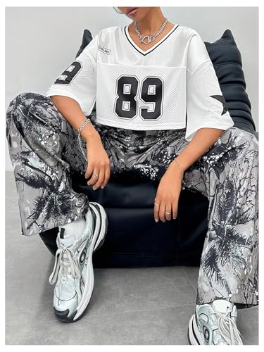 HOT ! Verdusa Women's Jersey Shirts Y2K Number Graphic Crop Tops Half Sleeve Summer Tees