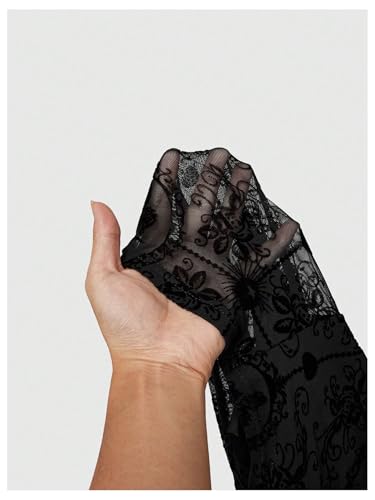 More information about Verdusa Women's Gothic Clothes Flare Sleeve Tops Flower Pattern Velour Cross Lace-up Waist Crop Top