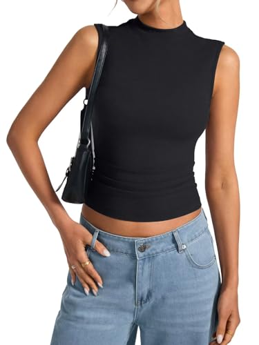 More information about Womens Cotton Ribbed Tank Tops Sleeveless Mock High Neck Top Fitted Basic Summer Cami Shirts Y2K Outfits 2025