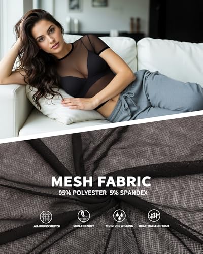 MANGOPOP Women's Short Sleeve Long Sleeve Sheer Mesh Crop Tops Tee Shirt Blouse 5